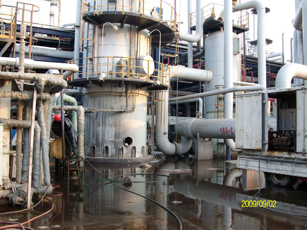 某化工廠大修化換熱設(shè)備物理清洗現(xiàn)場(chǎng)